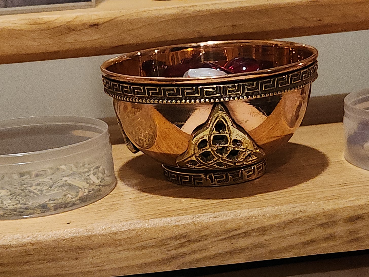 True to my word, I have put together an altar over the last couple of weeks. I don’t know if I would call it an actual pagan altar because I have no items related to gods or deities. One step at a time for me. Since altars are very personal and can vary drastically, I want to use, test, and observe what I have. Then I can slowly add additional items, including perhaps a god from the Celtic pantheon.