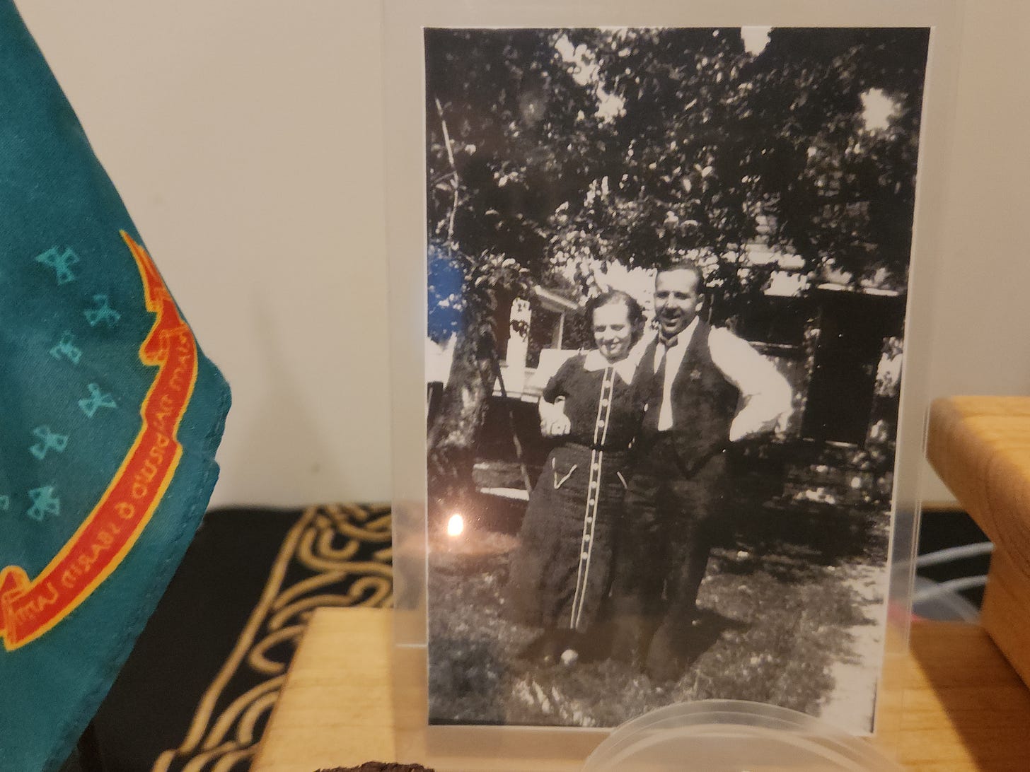 Behind the sage and wormwood is a photo of my paternal grandparents. Unfortunately, my grandfather passed away before I was born. *Remember, a feature of altars is ancestor veneration*.