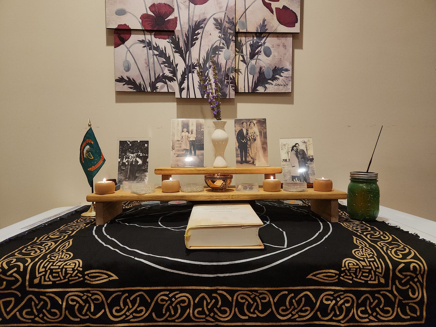 Lastly, I should mention that there are also four tea candles on the altar. What’s an altar without fire?